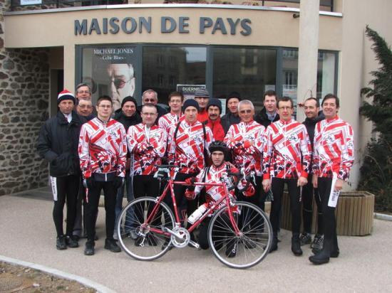 Moins 7° ce matin pour la première sortie officielle. Quelques durs au mal vont quand même faire quelques kilomètres pour dire de ne pas avoir sorti le vélo pour rien. Les autres se retrouvent devant un bon café bien au chaud à papoter sur les prochaines sorties de l'année. A 11h30 tout ce petit monde se retrouve au pot de l'amitié rejoint par nos amis les marcheurs, qui eux, ont randonné sur les chemins de St Martin. Un bon moment passé ensemble autour d'un verre, quelques éclats de rire plus tard nous nous quittons avec des rendez-vous plein les poches. JP