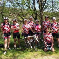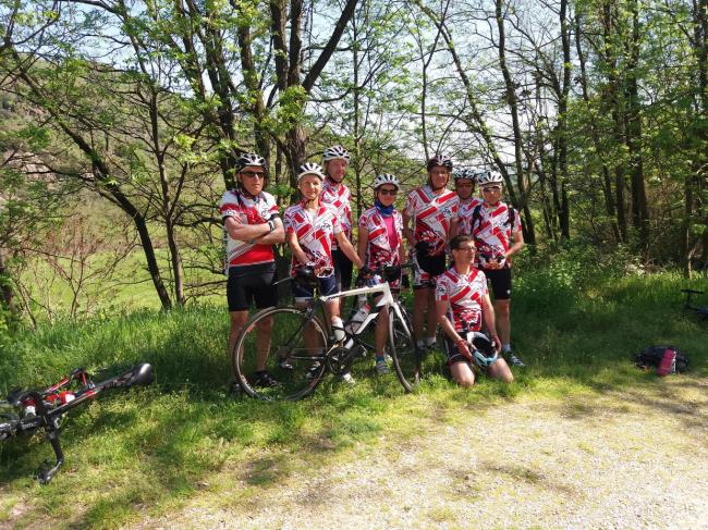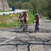 Vendredi 20 avril, 9h RDV à la Madeleine. Christian et moi-même prenons le départ à la Madeleine. Les autres cyclotes et cyclos arrivent en vélo. Marc est parti tôt ce matin de Haute Rivoire. A la fin de la journée, plus de 200 kms s’afficheront à son compteur ; Jean Pierre T l’accompagne depuis St Symph. Ils ont dû passer trop vite à Ste Catherine si bien que Frédéric ne les a pas vus. Il arrive après avoir fourni quelques bons efforts. Daniel, Armelle, Olivier et Jean Pierre C arrivent de St Martin en passant par Mornant. Ils ont déjà fait une bonne mise en jambes.